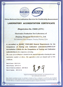 “浙江中訊電子有限公司電子電器產品檢測實驗室”是國內開關行業首家國家認可的第一方實驗室( CNAS: L3173),實施IEC17025實驗室管理體系。實驗室獨立于公司其它部門運行,主要為公司研發和品質部門提供檢測服務,同時也具備對外開展檢測活動的能力。